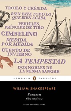 Este volumen reúne la producción tardía de Shakespeare, mostrando sus creaciones más claras, desde las llamadas «obras problemáticas» hasta su salida crepuscular de los escenarios en La Tempestad. Sin renunciar a la reflexión, a los juegos de palabras, a la dualidad de lo tragicómico, ni a su interés por las pasiones humanas -ahí donde nace el misterio de su universalidad- construye dramas llenos de simbolismo, fantasía y lirismo hipnótico. Romances Es el cuarto volumen de una colección de cinco que reúne la obra completa de Shakespeare. Aquí sí incluyen a Troilus y Cressida; Bien está lo que bien acaba; Medida por medida; Pericles, Príncipe de Tiro; cimbelino; Cuento de invierno; La tormenta y Dos nobles de la misma sangre. Esta edición, a cargo de Andreu Jaume, que también firma la introducción, presenta las mejores traducciones contemporáneas, respetando el verso y la prosa originales. Un festín para todos los amantes de las buenas letras.
